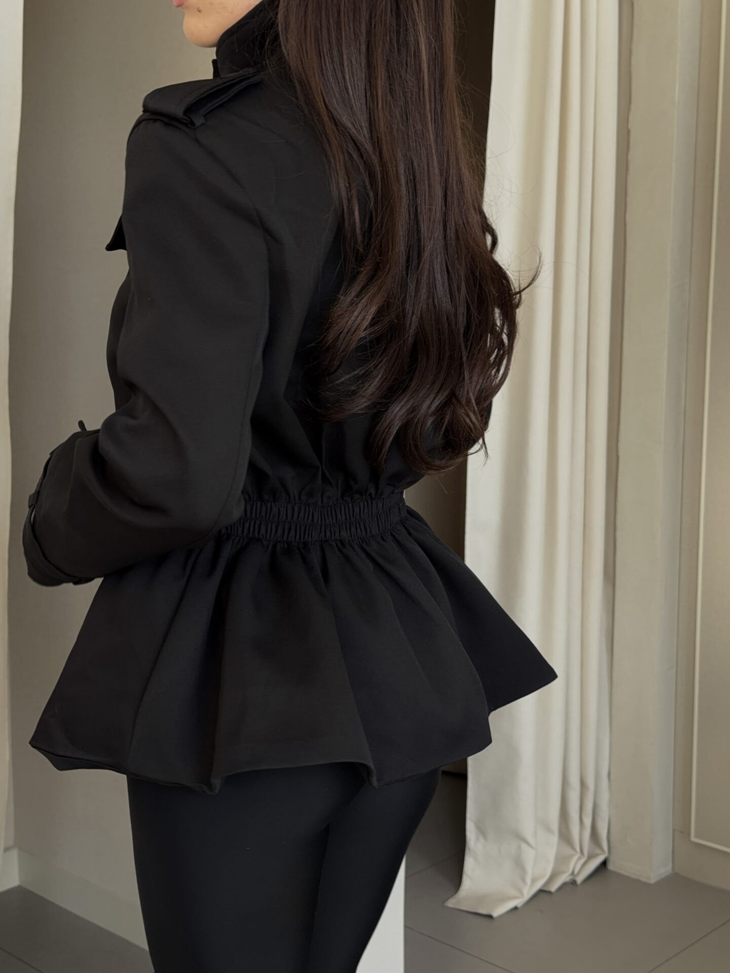 Jakna je modernog kroja. Ima atraktivnu kragnu i elasticno suzen struk. Komad koji morate imati.
