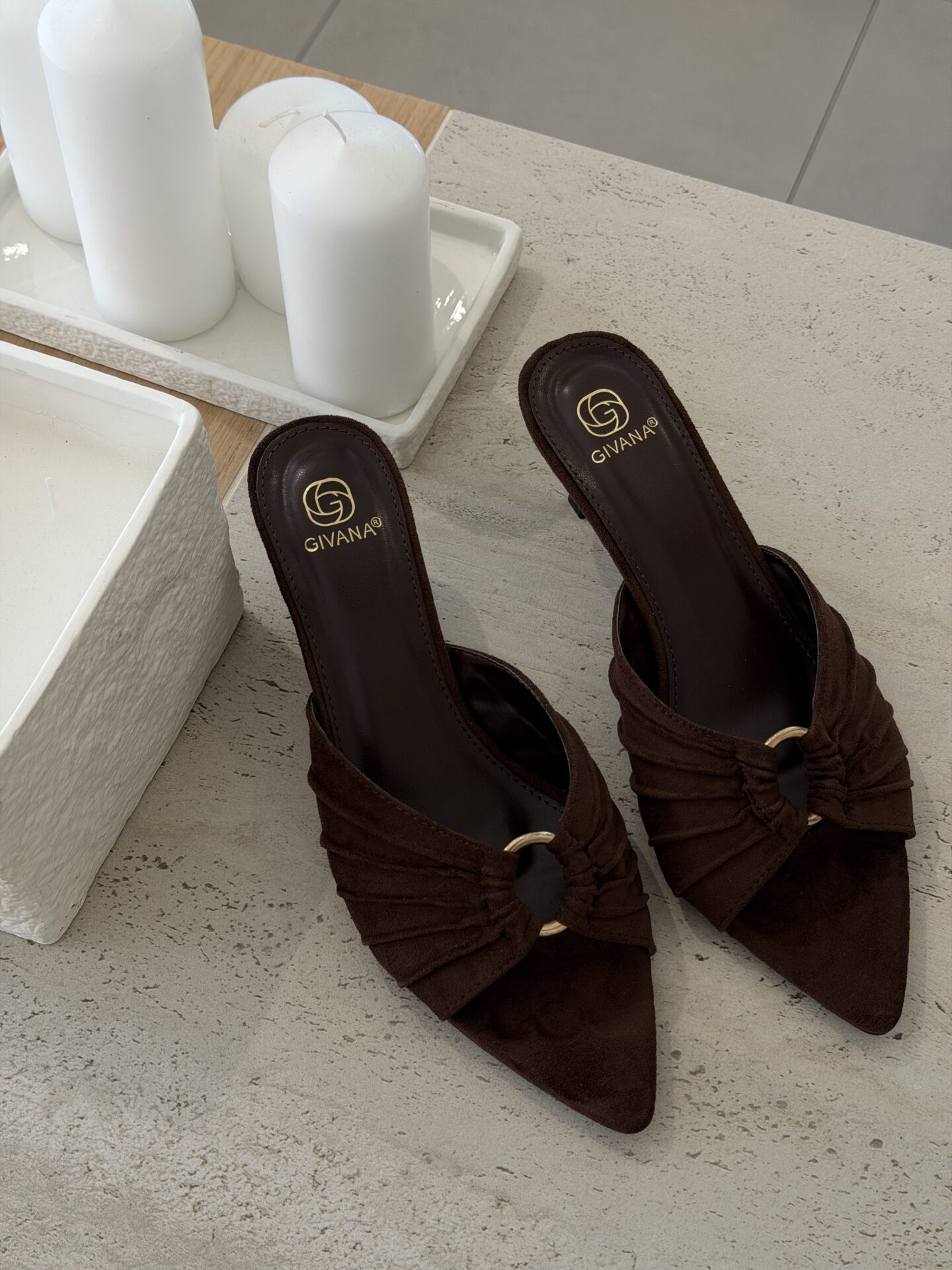 Papuce na manju stiklu,5cm.Modernog izgleda,sa malim zlatnim detaljem. Izradjene od kvalitetnog eco materijala.